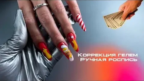 КОРРЕКЦИЯ НОГТЕЙ ГЕЛЕМ / РУЧНАЯ РОСПИСЬ НА НОГТЯХ / Новогодний маникюр